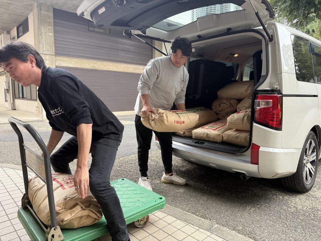 地元の旅行社アーストラベル水戸の社長さんが子どもたちが収穫したお米を車で運搬してくださいました。感謝です。