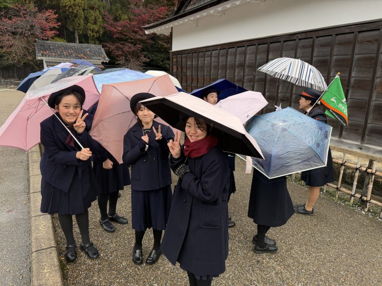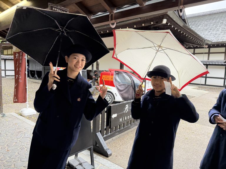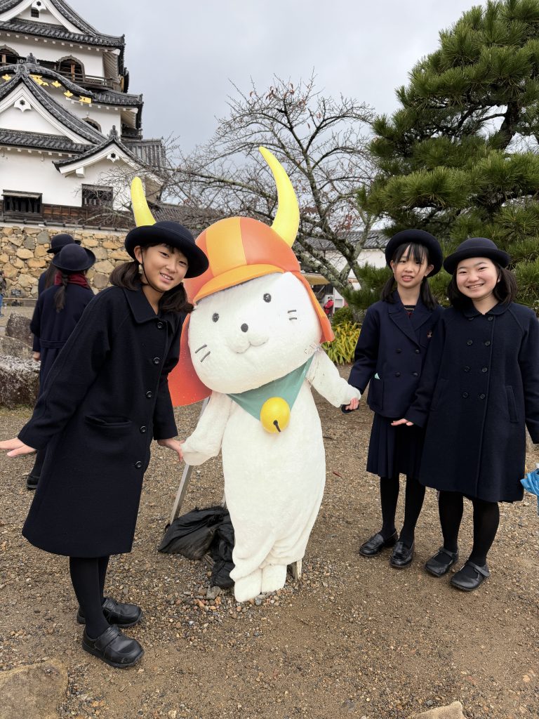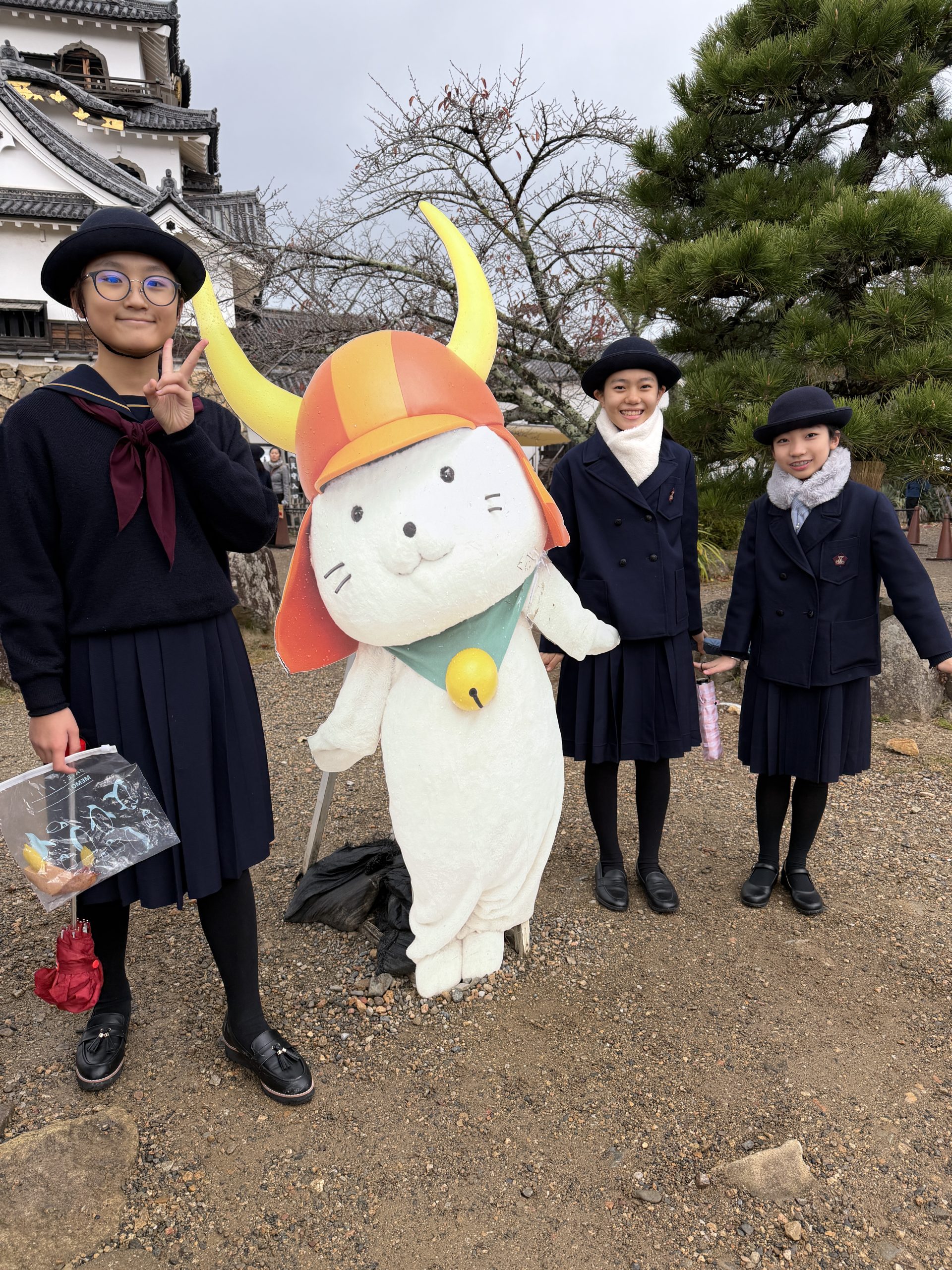 本日から3泊4日で関西方面への修学旅行が始まりました。初日のプログラムは米原駅から彦根城へ。あいにくの小雨でしたが、予定通り彦根城を見学。今回はひこにゃんにも会えて大満足。