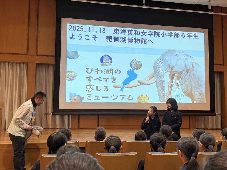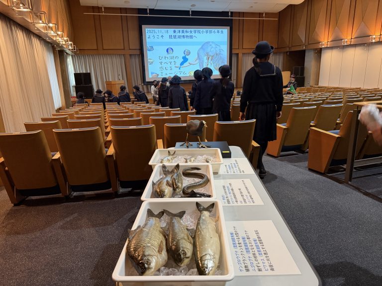 環境学習船は水位の低下と藻の大量発生のために出航できず・・・でしたが、琵琶湖博物館で学芸員の方から詳しく説明を伺うことができ、とても良い学びとなりました。