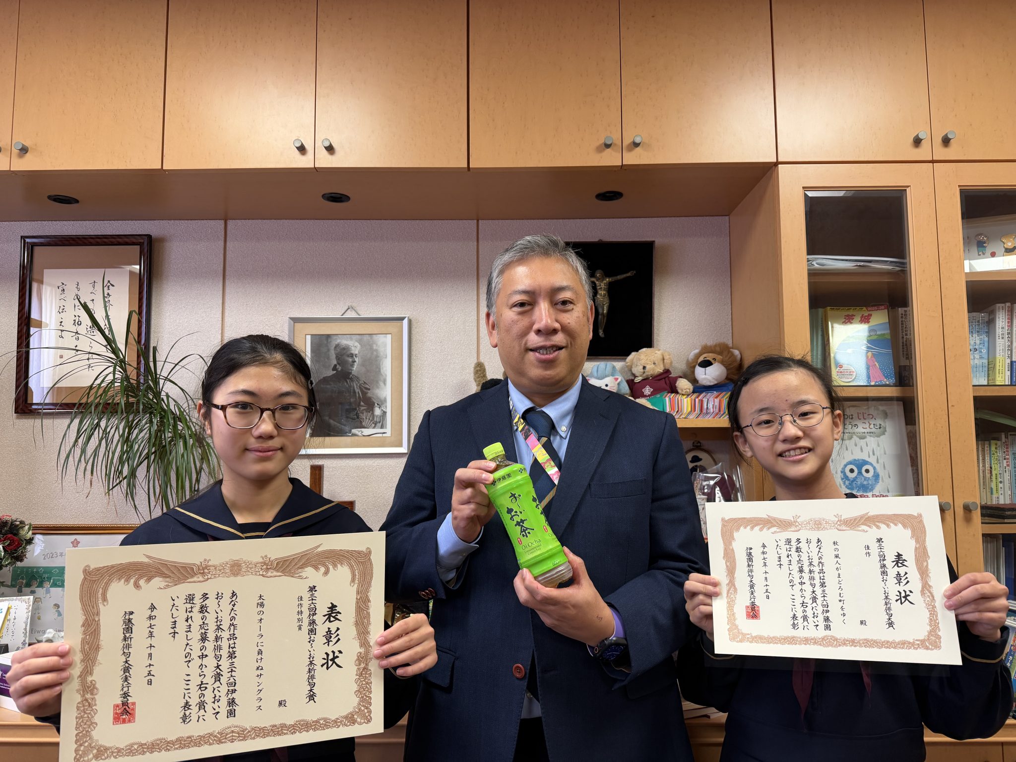 第36回伊藤園おーいお茶新俳句大賞の佳作特別賞と佳作に6年生の二人の児童が選ばれました。