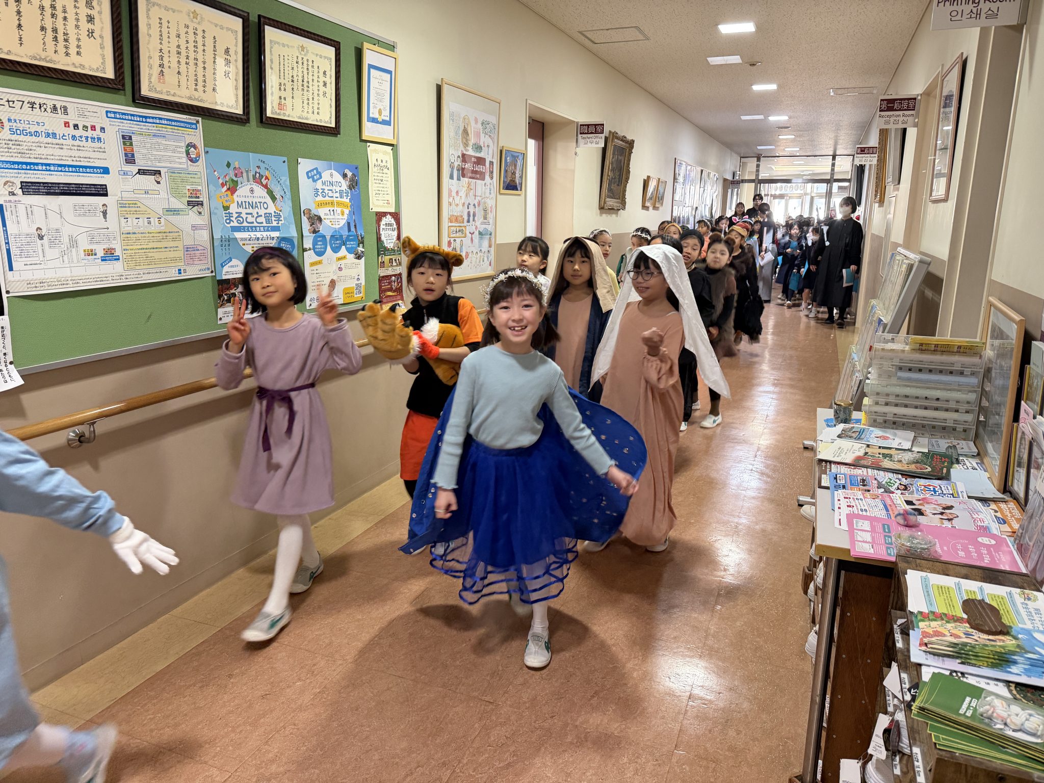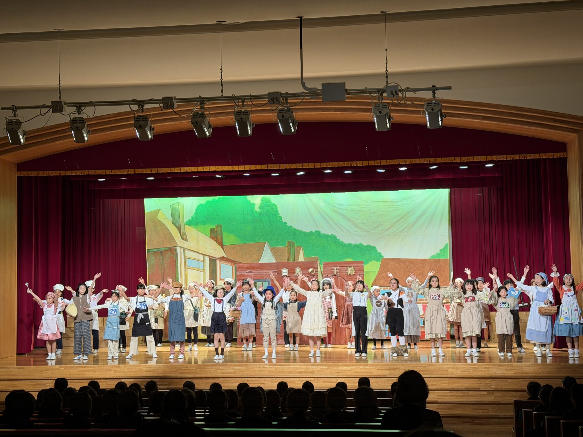 学芸会が行われました。5年生がインフルエンザ流行のため学年閉鎖となり、2年生と4年生の2学年のパフォーマンス。歌やダンス、セリフも練習した成果が存分に発揮される素晴らしいものでした。そして衣装もご家庭のご協力で子どもたちのかわいらしさが一層際立ってとっても素敵でした。(5年生は12月8日に延期となりました)