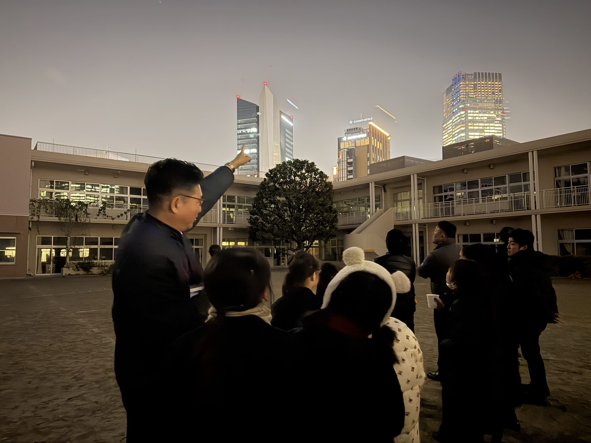 港区科学館の専門家の先生方にご来校いただき、4年生の希望者と夜の学校で星空を観察しました。都会の真ん中、六本木で星の観察ができるのかと半信半疑で参加しましたが、望遠鏡で月やベガ、土星などをしっかりと観察することができました。土星の輪っかも観ることができ、参加者たちから歓声が上がりました。