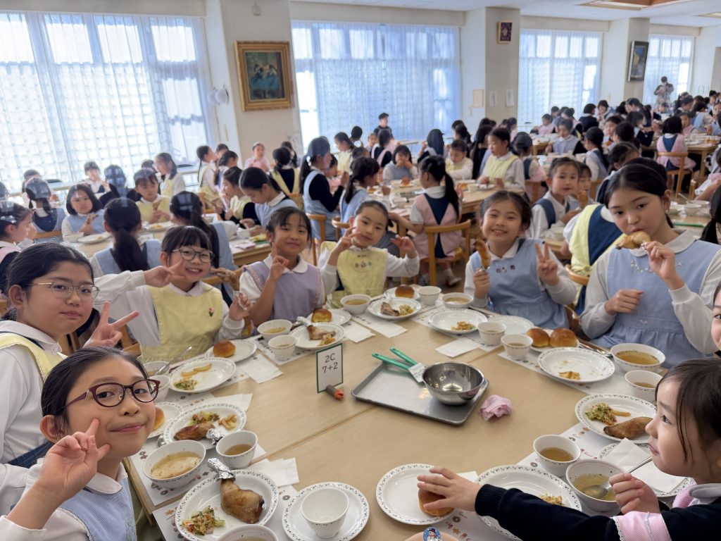 今年のクリスマスの給食は食堂の皆さんが心を込めて前日から仕込んで準備してくださったスペシャルメニュー。安全で美味しい鶏肉が入手しづらくなっている中、食品関係の保護者のご協力もいただきまして国産の美味しいチキンを仕入れさせていただくことができました。これが本当に美味しかった〜。栄養士さんはじめ、厨房スタッフの皆さん、食材を届けていただいている業者さんのご奉仕に感謝です。