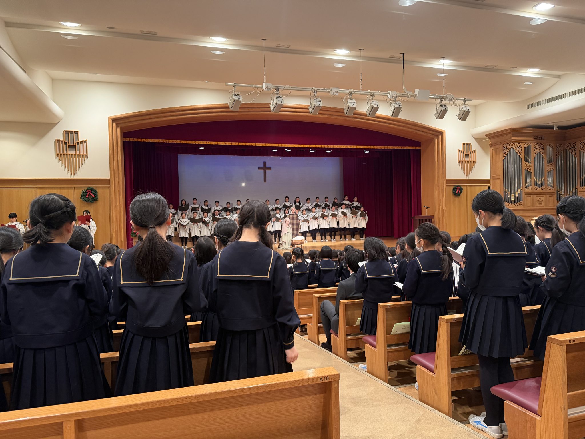 この日のクリスマス礼拝・聖劇をもちまして授業終了。子どもたちは冬休みに入りました。11月からインフルエンザが流行し、学年閉鎖や学級閉鎖などもありましたが、なんとか無事にお休みになります。アドベントからの数週間、クリスマスの礼拝メッセージでは自分のためだけでなく、「誰かのために」という視点が大切だということが多くの先生方から子どもたちや大人たちへ語られました。キラキラと美しいだけのクリスマスではない、本当の意味でのクリスマスを考えられる人になって欲しいなと思います。