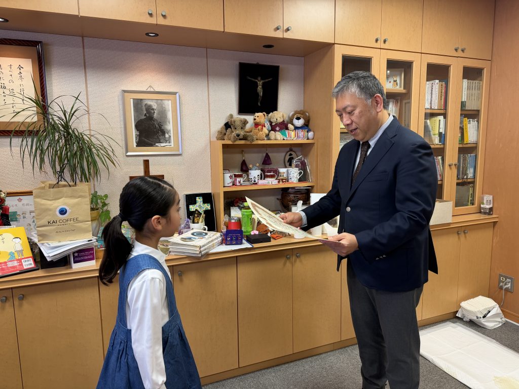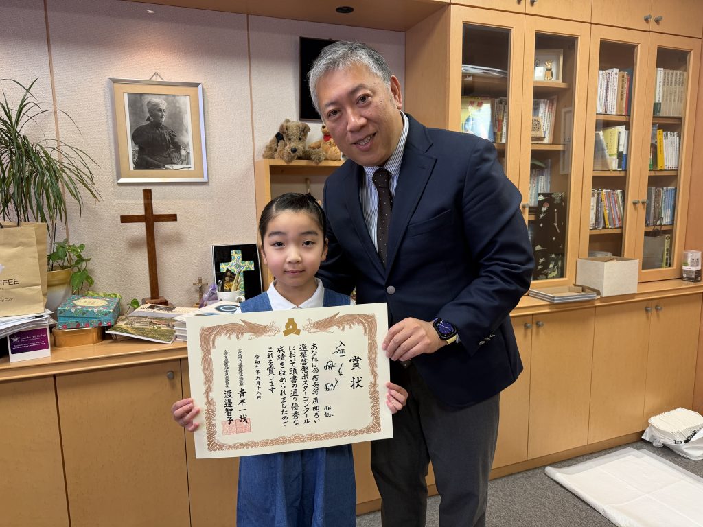 2年生が「明るい選挙啓発ポスターコンクール」にて入選しましたので部長室で表彰式を行いました。