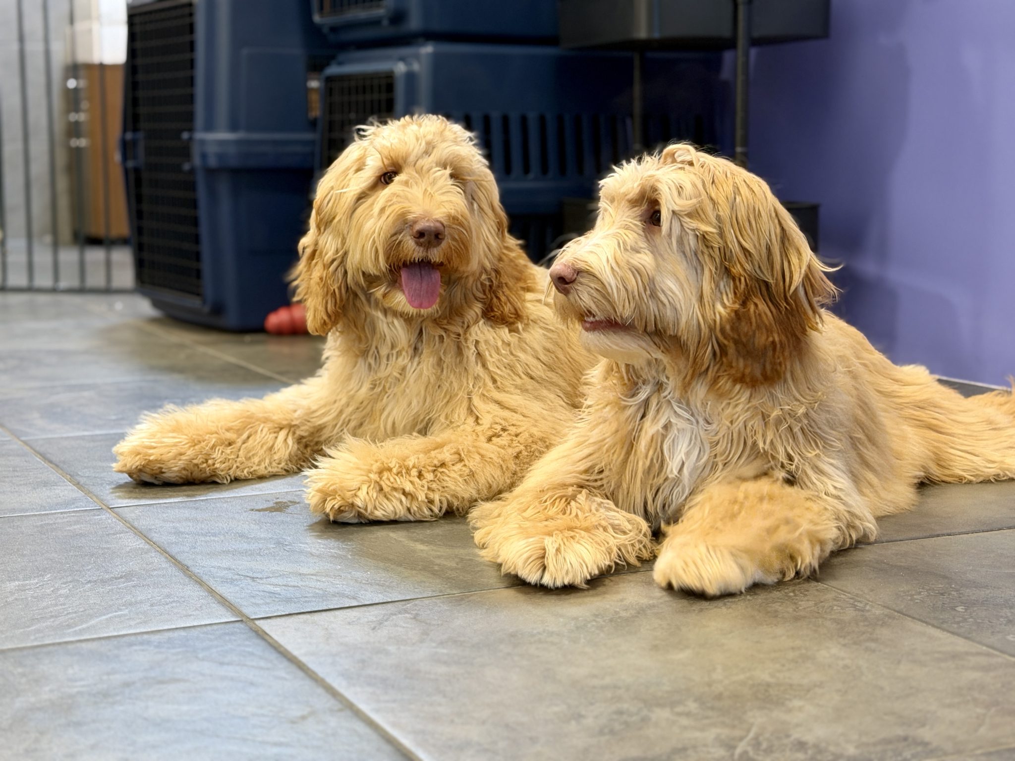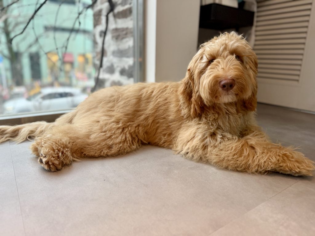 とある事情から1週間ほど、こちらのオーストラリアン・ラブラドゥードゥルの男の子(生後7ヶ月)が社会化のトレーニングを兼ねて小学部へ通うことになりました。