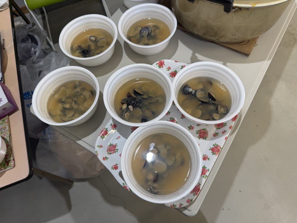 今年はどういうわけかシジミの収穫量が激減とのことでしたが、地元の方々が子どもたちのためにと地域にお声がけいただき、たっぷりのしじみ汁を堪能することができました。感謝です!