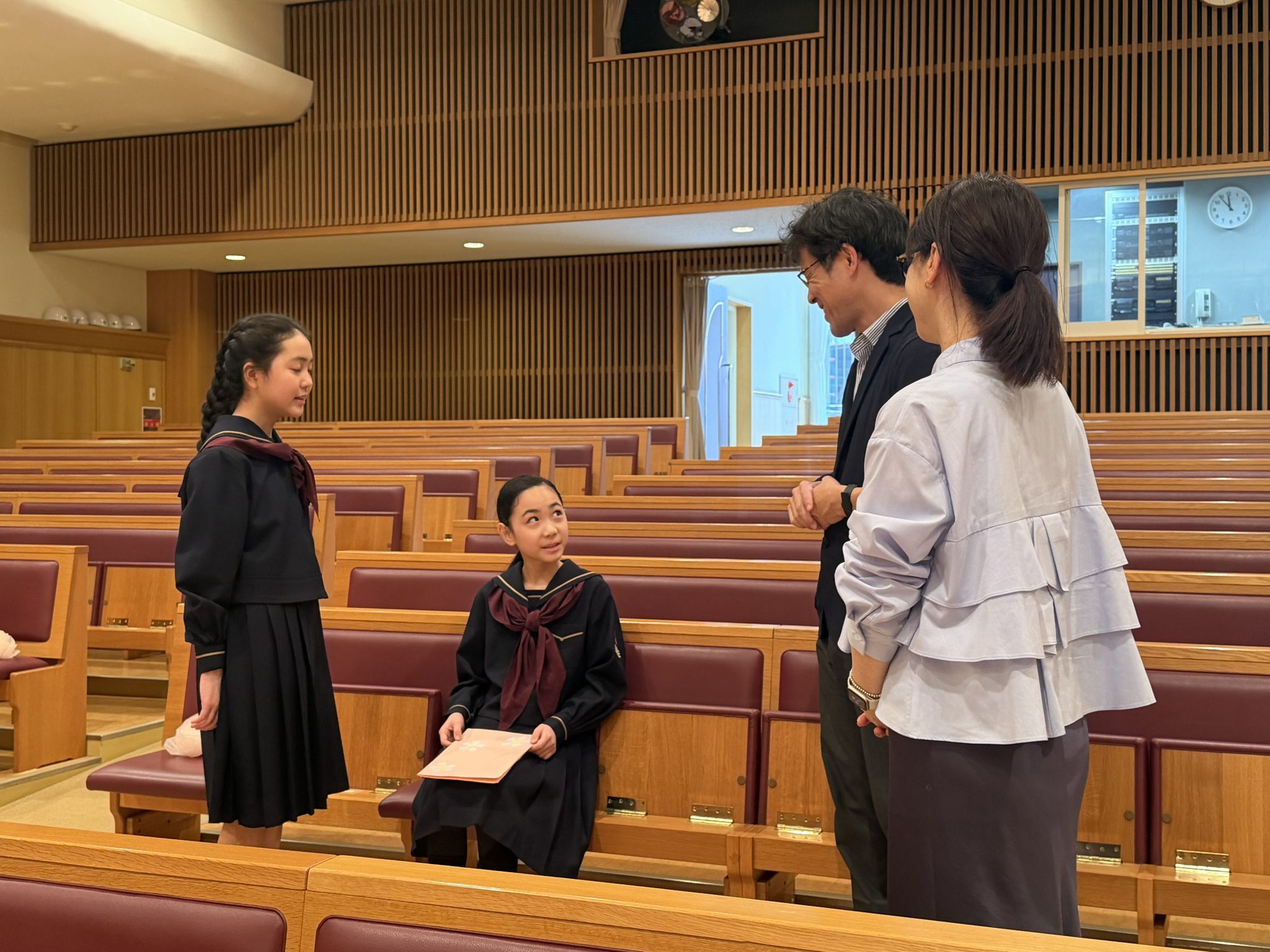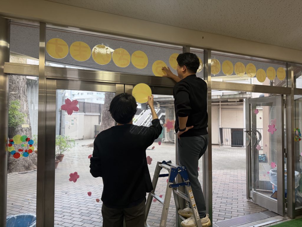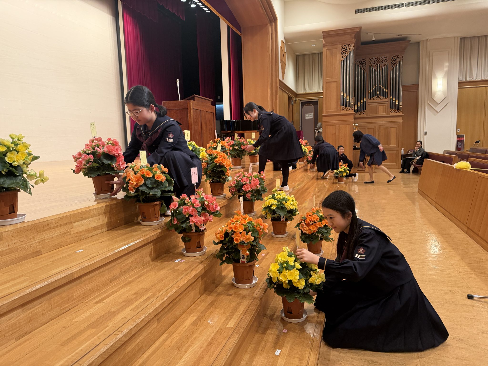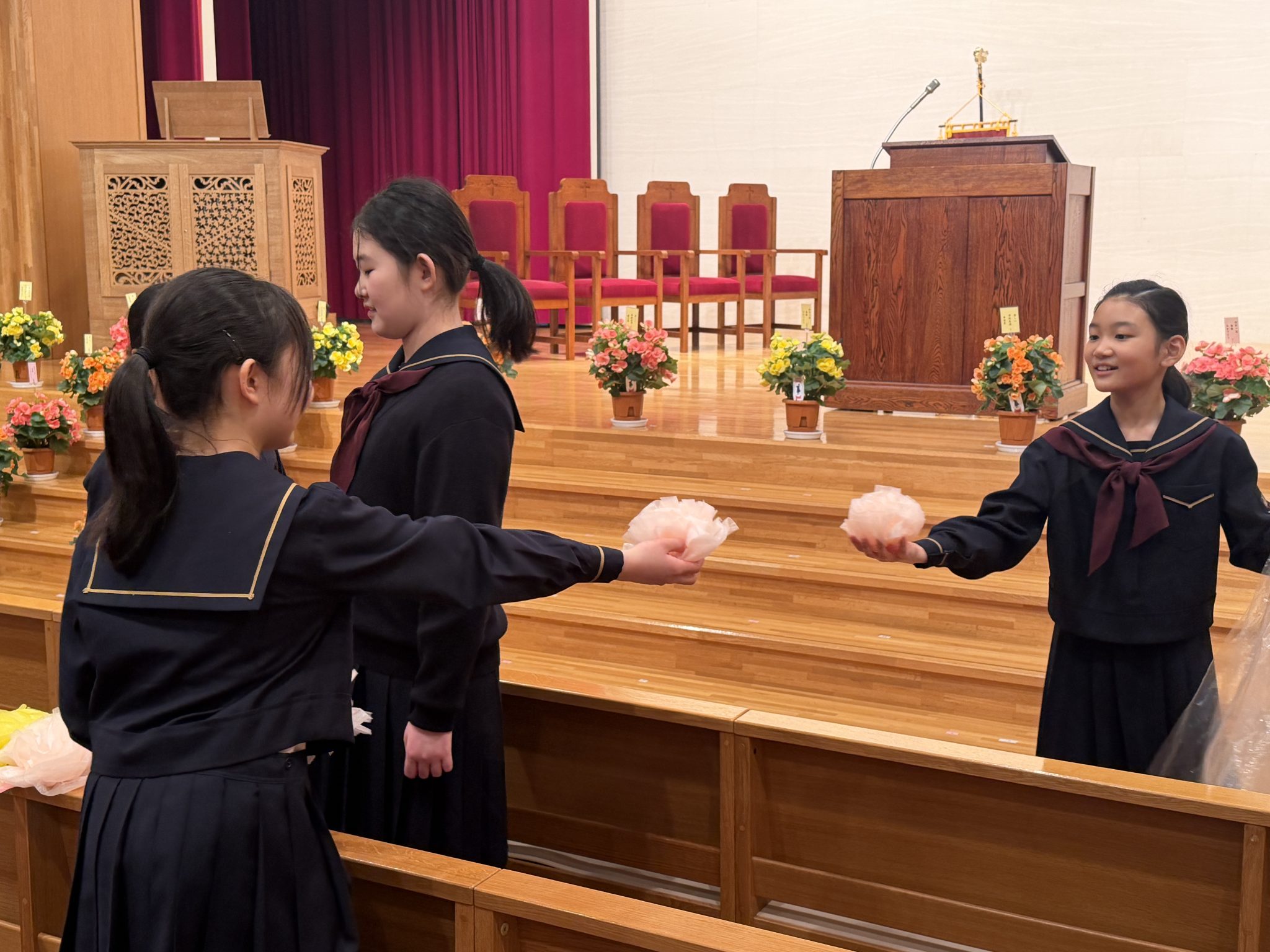 イースター礼拝のあと、在校生全員で明日の入学式のリハーサルを行い、その後6年生は校内のお掃除や飾り付けなどを行いました。