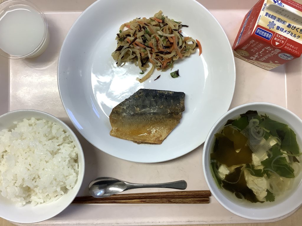 これからも、しばらく給食委員会からブログをお伝えします。 本日の献立 ・ごはん ・鯖のみそ煮 ・切干大根のナムル ・豆腐とわかめのすまし汁 ・カルピスゼリー 切...