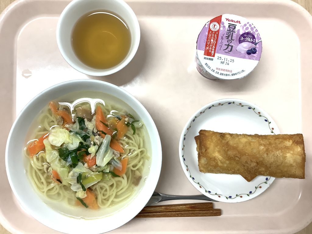 本日の献立 ・タンメン ・春巻 ・豆乳ヨーグルト タンメンは、スープが少し薄かった...