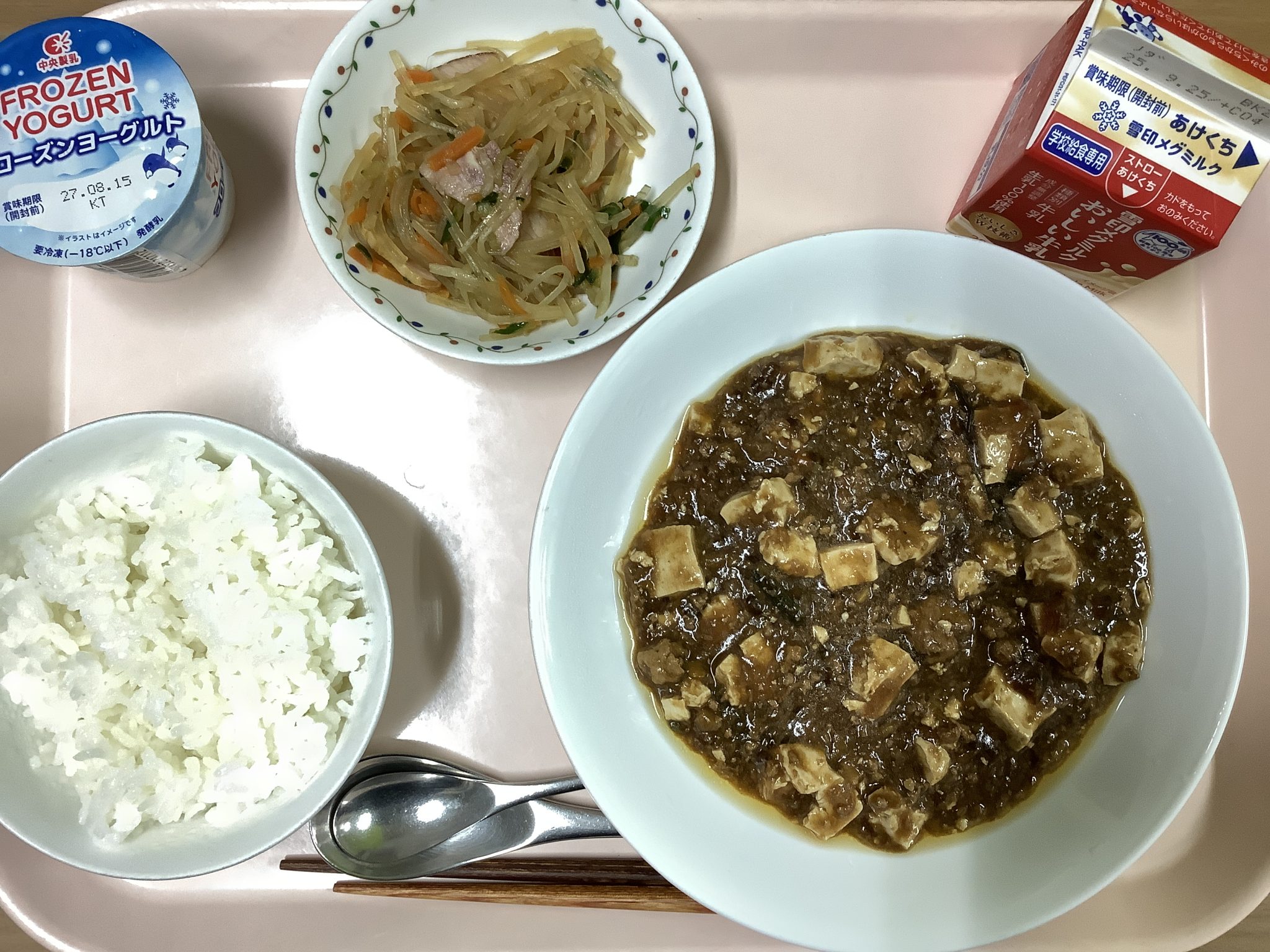 ・ごはん ・麻婆豆富 ・中華風サラダ ・フローズンヨーグルト