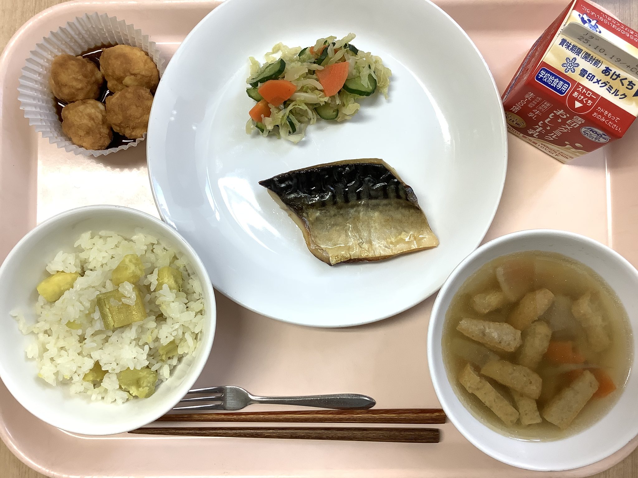 ・さつまいもごはん ・さばの文化干し ・野菜の香り漬け ・根菜の味噌汁 ・月見団子