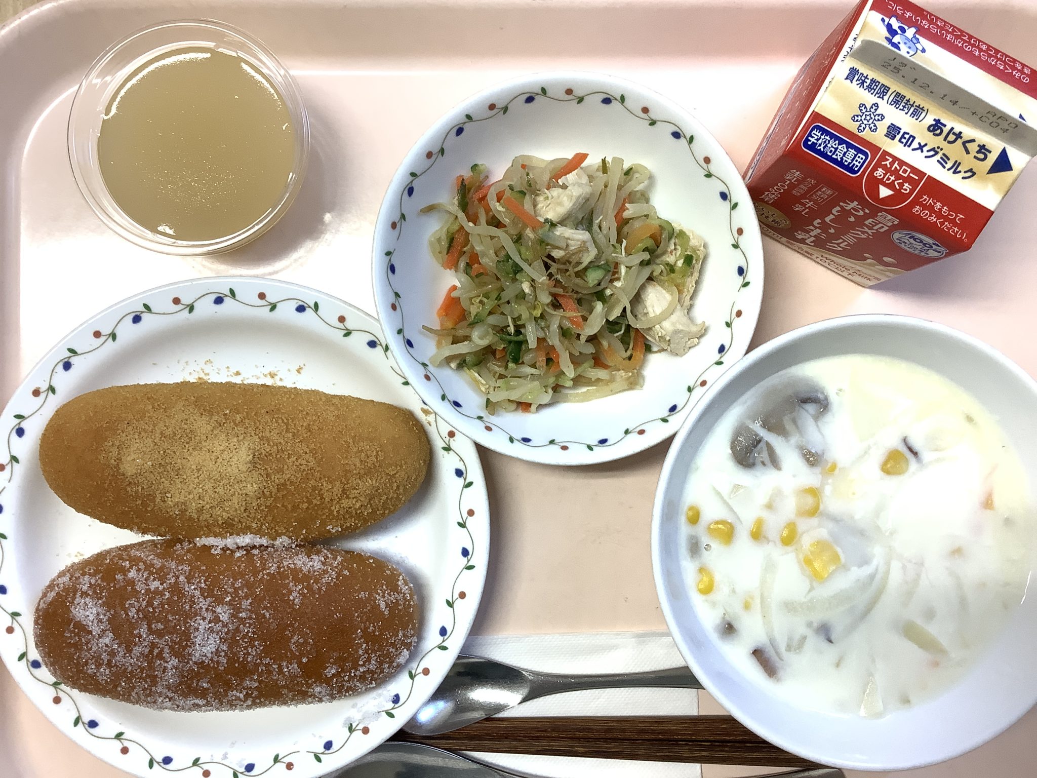 ・あげぱん ・ささみのサラダ ・冬野菜のミルクスープ ・桃ゼリー