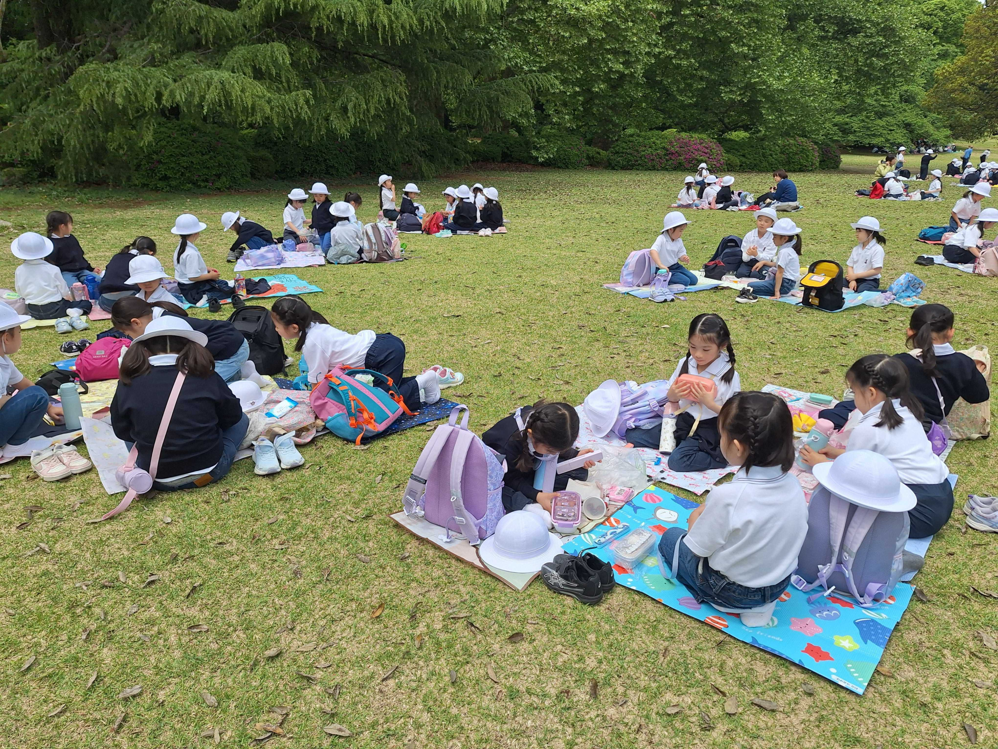 低学年は新宿御苑、中学年は小金井公園、高学年は吾妻山・弘法山・権現山ハイキングに行ってきました。
